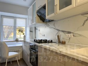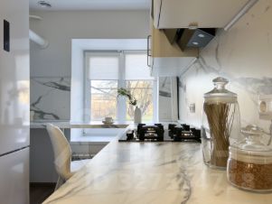 • кухня с окном во двор и встроенной техникой