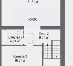 3 этажа: общая площадь 1 и 2 этажа - 148,8 кв.м. + 3й этаж мансардного типа - 57 кв.м.