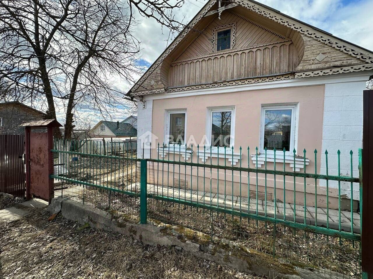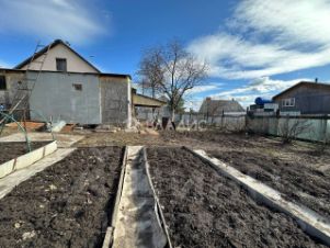 -Ухоженный огород с фруктовыми деревьями и грядками.