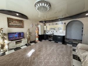 О ремонте: ремонт делали для себя из качественных материалов. Натяжные и подвесные потолки с точечными и подвесными светильниками, отделка пола выполнена кафелем в прихожей, санузлах и кухне; ламинат ,линолеум.