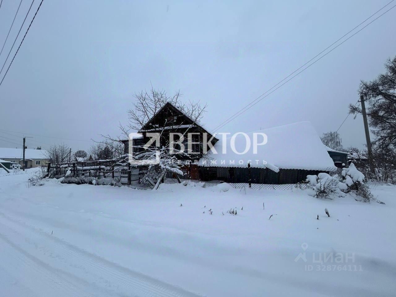 На участке старенький дом с цокольным этажом.