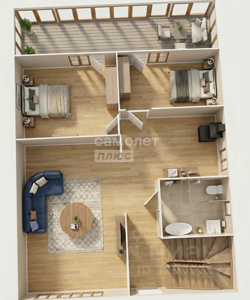 Готовый к проживанию второй этаж: На втором этаже расположены уютные жилые комнаты: спальня, детская, просторная кухня, гостиная, а также второй санузел. Особое внимание привлекает просторная остекленная терраса со "вторым светом", доступная из двух спален — идеальное место для утреннего кофе или вечерних посиделок.