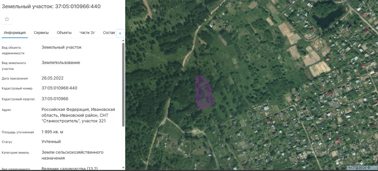 - кадастровый номер участка 37:05:010966:440,