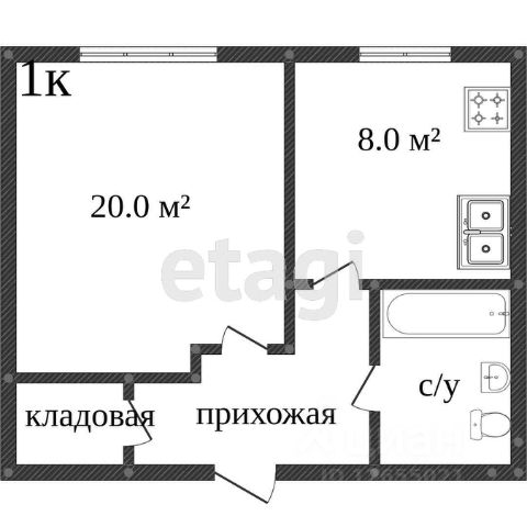 От года, 20 000 ₽ + 2 800 ₽ комм. платежи (без счётчиков), комиссия 100%, залог 10 000 ₽