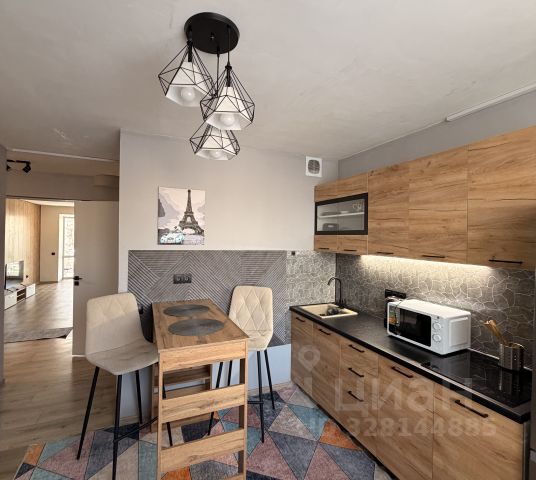 На кухне и в комнате свежий ремонт, стиральная машина, холодильник, стол.